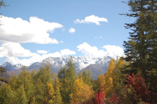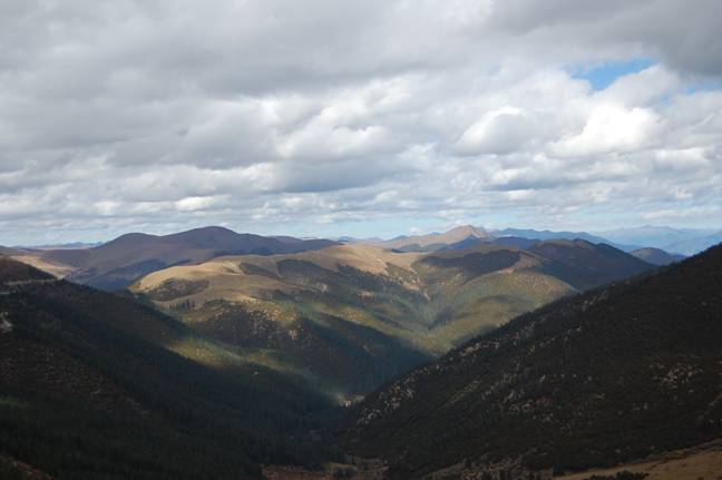 进入折多山(此山脉的北方一段即红军翻越的大雪山)