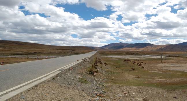 左右的山间盘旋,不再有上上下下的感觉,连续几小时的荒凉草甸很快就能让人视觉疲劳、昏昏欲睡。比起之前经过的那段318国道,这里的路况却逐渐好起来了,而沿路也听到了最多的车辆失事的故事。。。