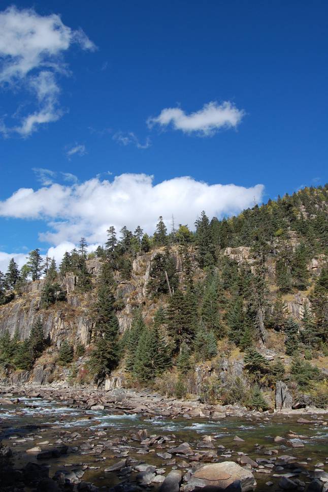 的垂直落差,可万万不能有恐高症!县城地域狭小,连解放军兵站都找不到一块空地,只能建在西去10多公里的山间。而此地的餐馆却贵得令人咂舌,一条普通的雅江鱼卖RMB120.00/斤!
