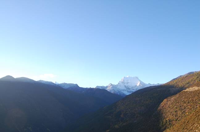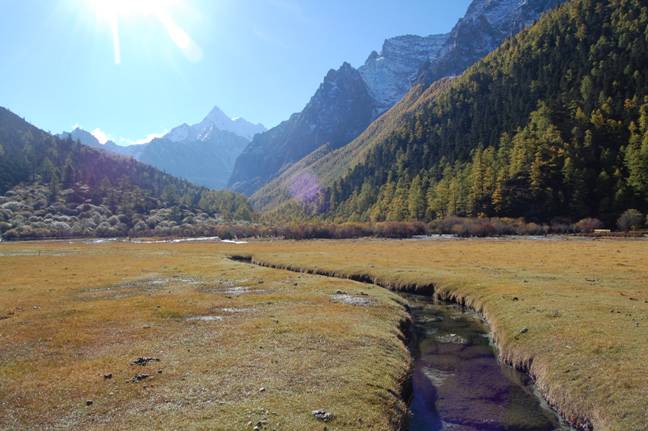 一路从4000多米的棕色高山草甸,盘旋到