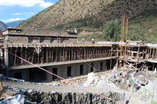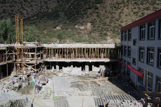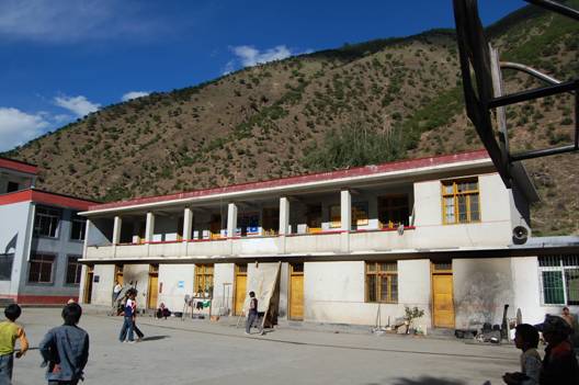 姑咱镇有卫校、师范等中专和高等院校,数量虽不多,但却是甘孜州学生初中毕业后的主要深造方向,特地绕路去看了一下。校区挤在大渡河谷西岸狭长的一点平地上,很干净、漂亮。校门口保安很严格,连拍照也被限制。