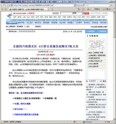 我司与易趣网合作, 举行了赈灾T-shirt网上义卖活动, 所得善款已全部捐赠地震灾区。 |