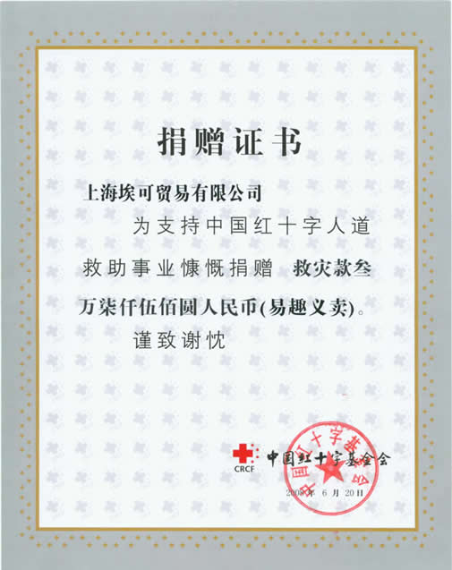 2008年5月14日,我司通过上海红十字会向地震灾区捐款人民币壹拾万元整。 |