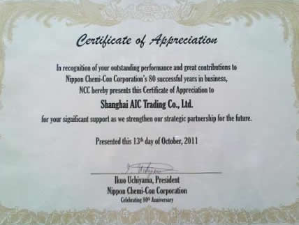 我司获NIPPONCHEMI-CON八十周年特别奖(亚太区仅授5份)